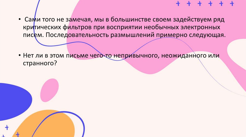• Нет ли в этом письме чего-то непривычного, неожиданного или