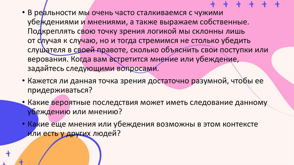 • В реальности мы очень часто сталкиваемся с чужимиубеждениями и мнениями, а также выражаем собственные.
