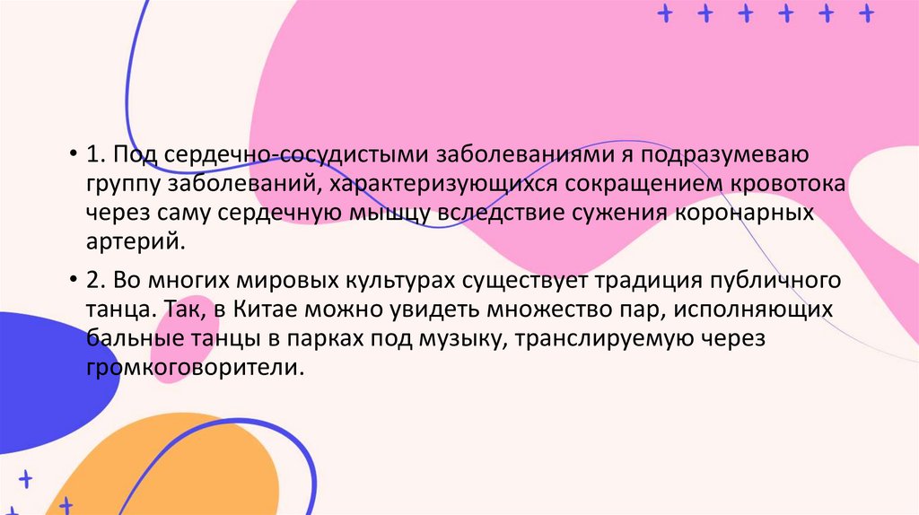 • 1. Под сердечно-сосудистыми заболеваниями я подразумеваюгруппу заболеваний, характеризующихся сокращением кровотока