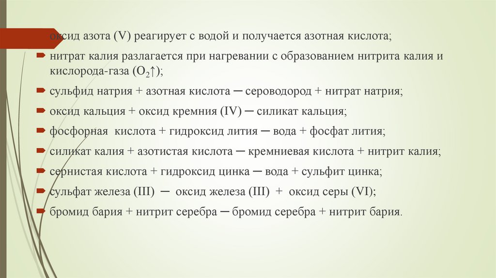 оксид азота (V) реагирует с водой и получается азотная кислота;нитрат калия разлагается при нагревании с образованием нитрита калия и
