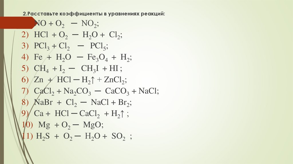 2.Расставьте коэффициенты в уравнениях реакций:1) NO + O2 ─ NO2;