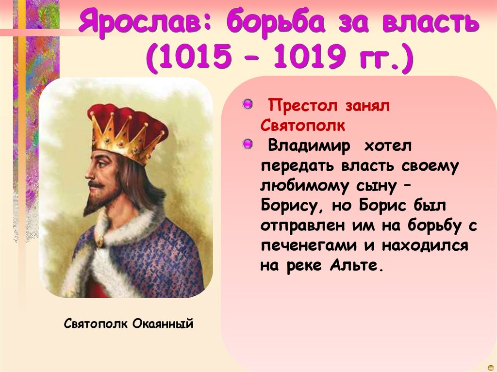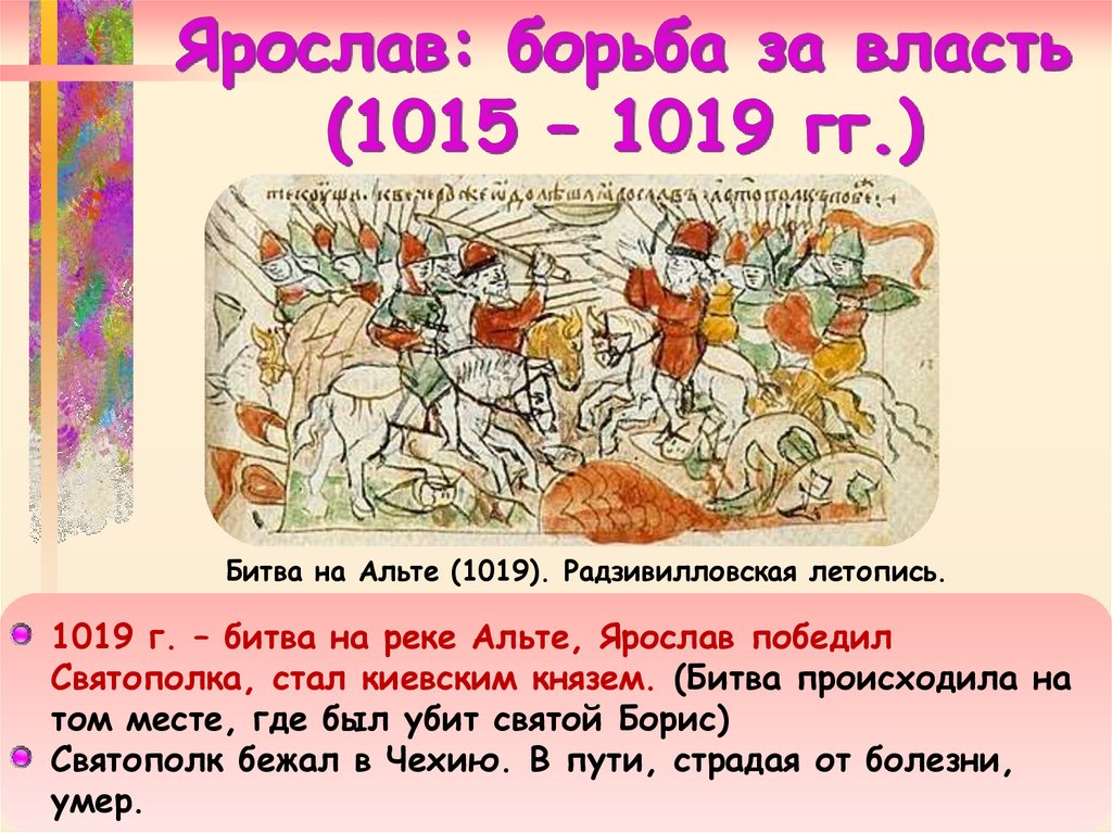 Святополка, стал киевским князем. (Битва происходила на