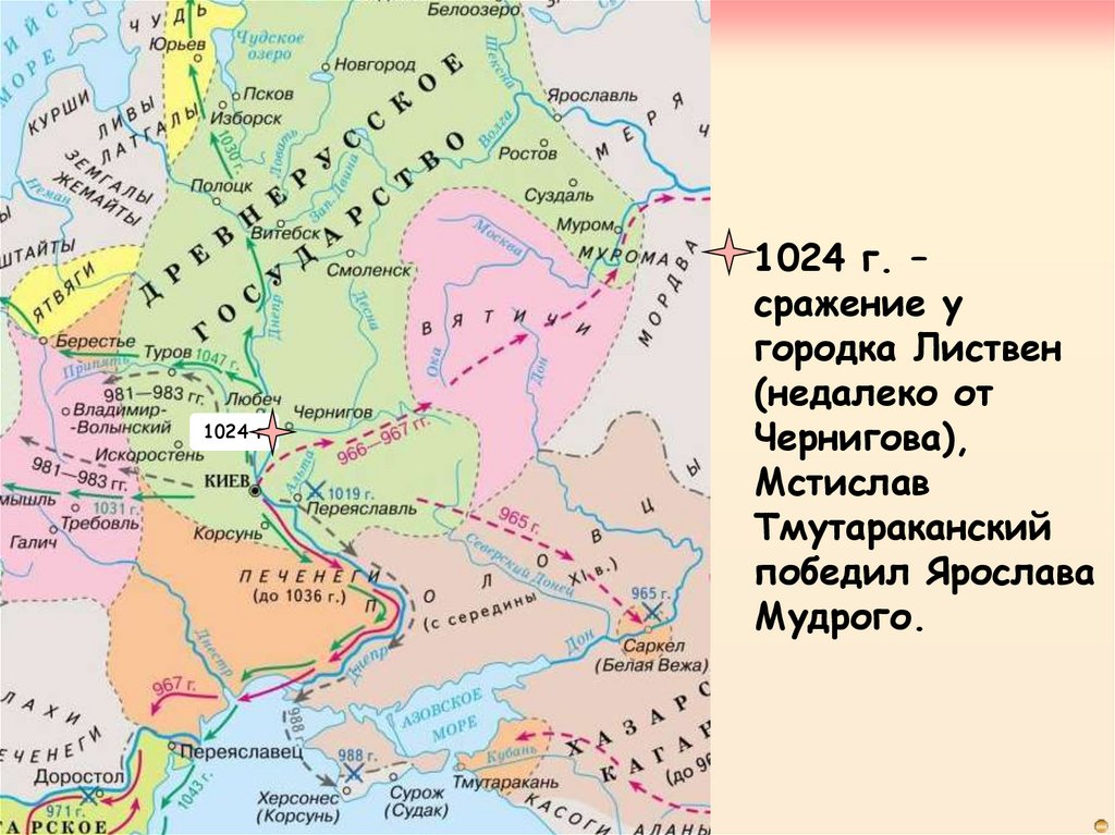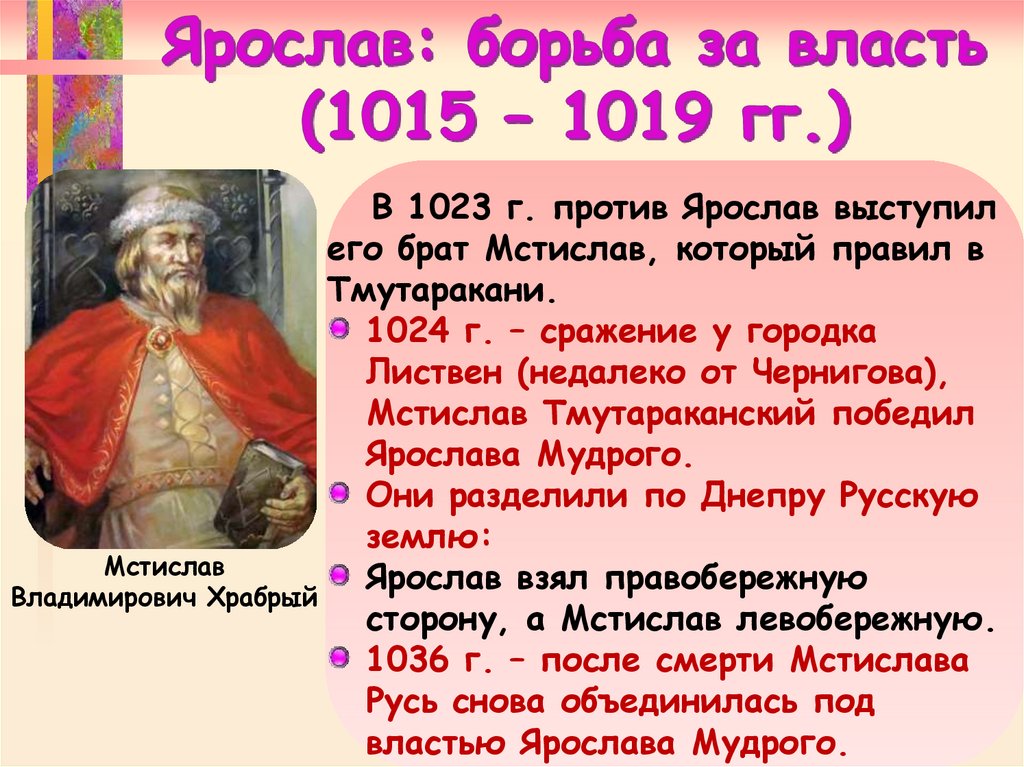 В 1023 г. против Ярослав выступилего брат Мстислав, который правил в