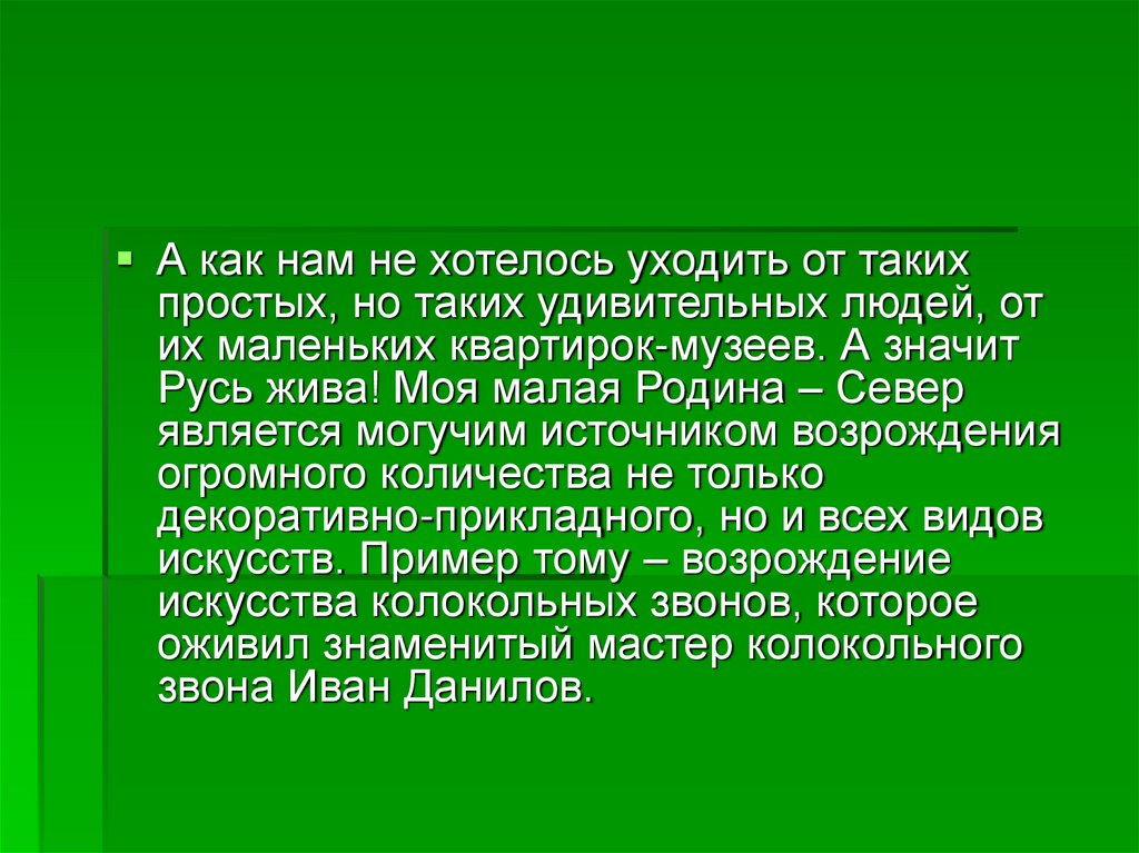 Эта работа далеко не исчерпывает всехбогатств Русского Севера. За её пределами
