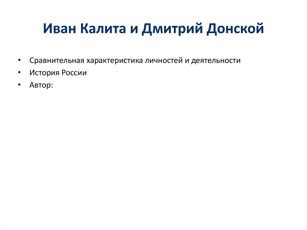 Иван Калита и Дмитрий Донской• Сравнительная характеристика личностей и деятельности