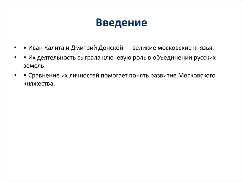Введение• • Иван Калита и Дмитрий Донской — великие московские князья.