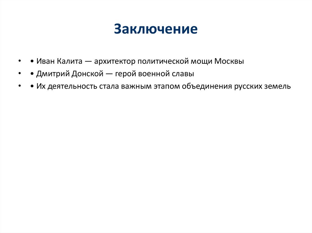 Заключение• • Иван Калита — архитектор политической мощи Москвы