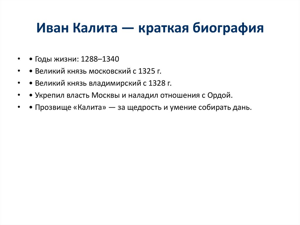 Иван Калита — краткая биография• Годы жизни: 1288–1340