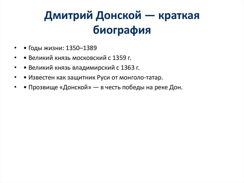 Дмитрий Донской — краткаябиография