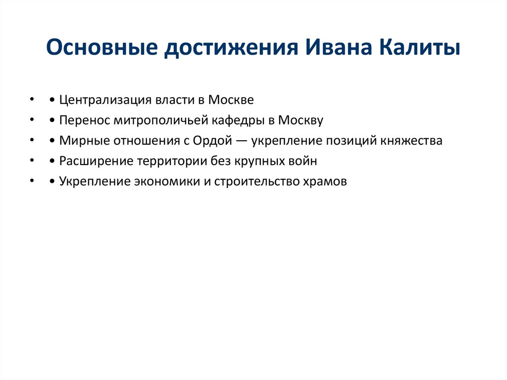 Основные достижения Ивана Калиты• Централизация власти в Москве