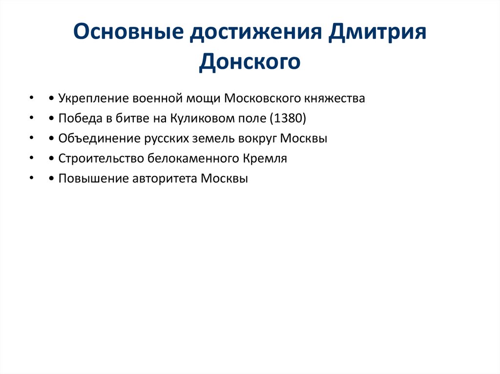 Достижение | Укрепление Москвы | Победа в Куликовской битве