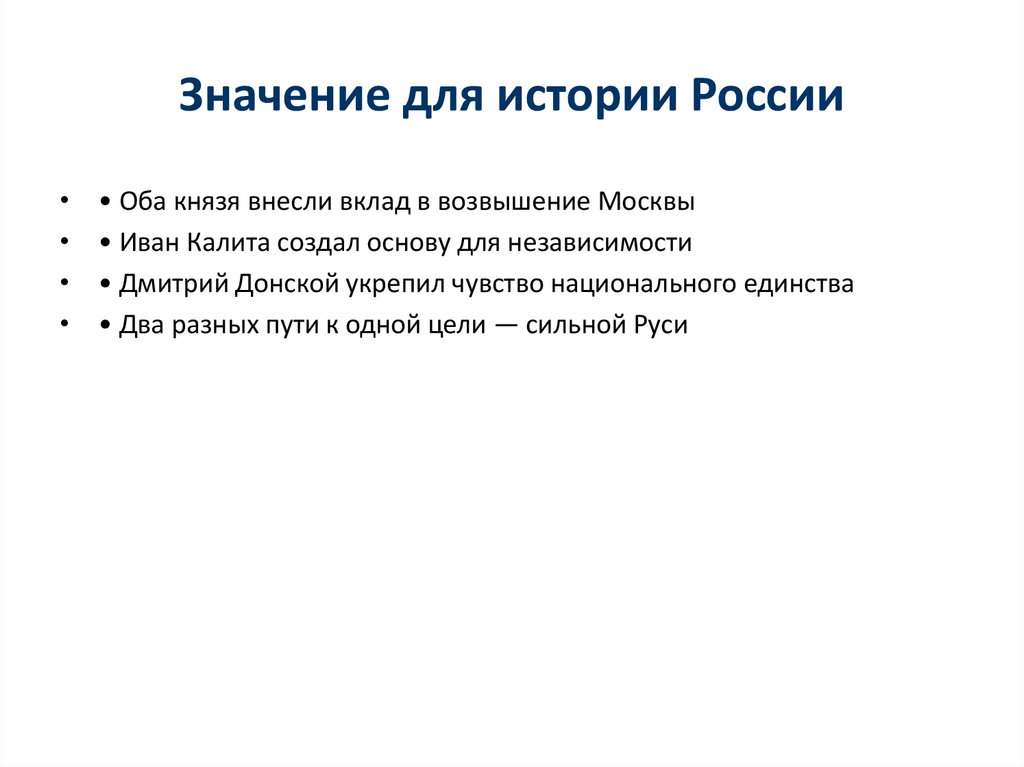 Значение для истории России• Оба князя внесли вклад в возвышение Москвы