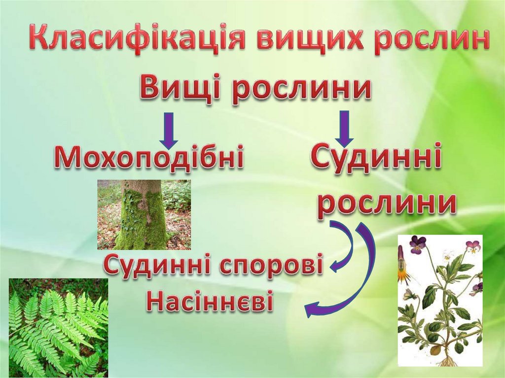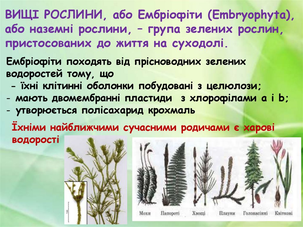 ВИЩІ РОСЛИНИ, або Ембріофіти (Embryophyta),або наземні рослини, – група зелених рослин,