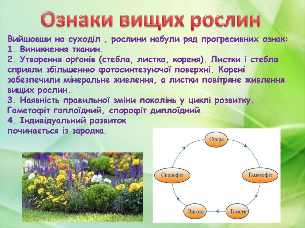 Вийшовши на суходіл , рослини набули ряд прогресивних ознак:1. Виникнення тканин.