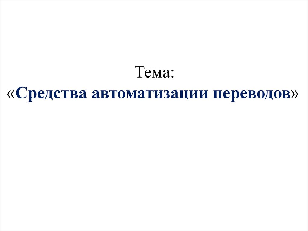 Тема:«Средства автоматизации переводов»