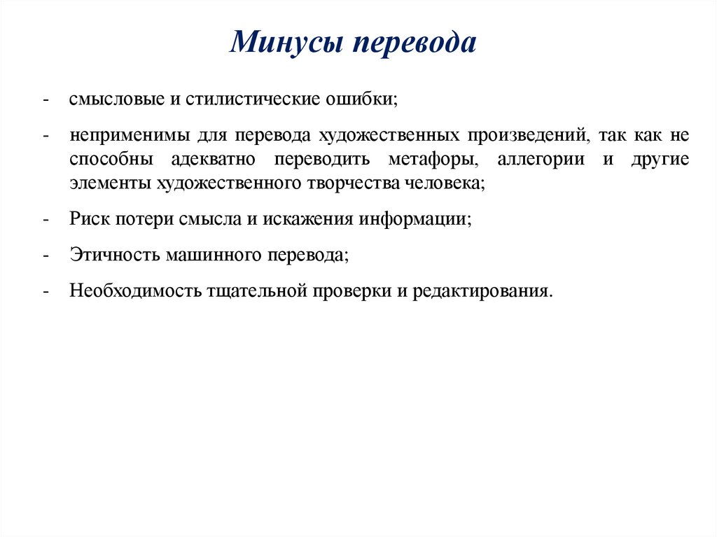 Минусы перевода- смысловые и стилистические ошибки;