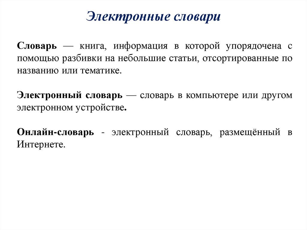 Электронные словариСловарь — книга, информация в которой упорядочена c