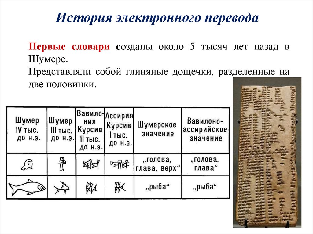 История электронного переводаПервые словари созданы около 5 тысяч лет назад в