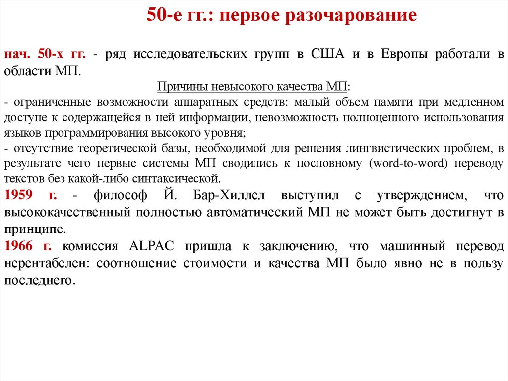 1966 г. комиссия ALPAC пришла к заключению, что машинный перевод