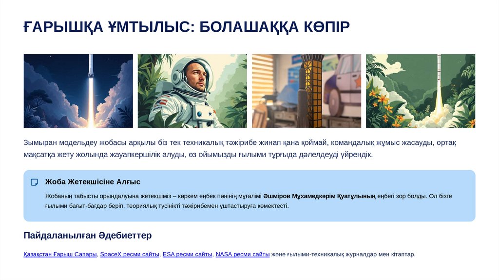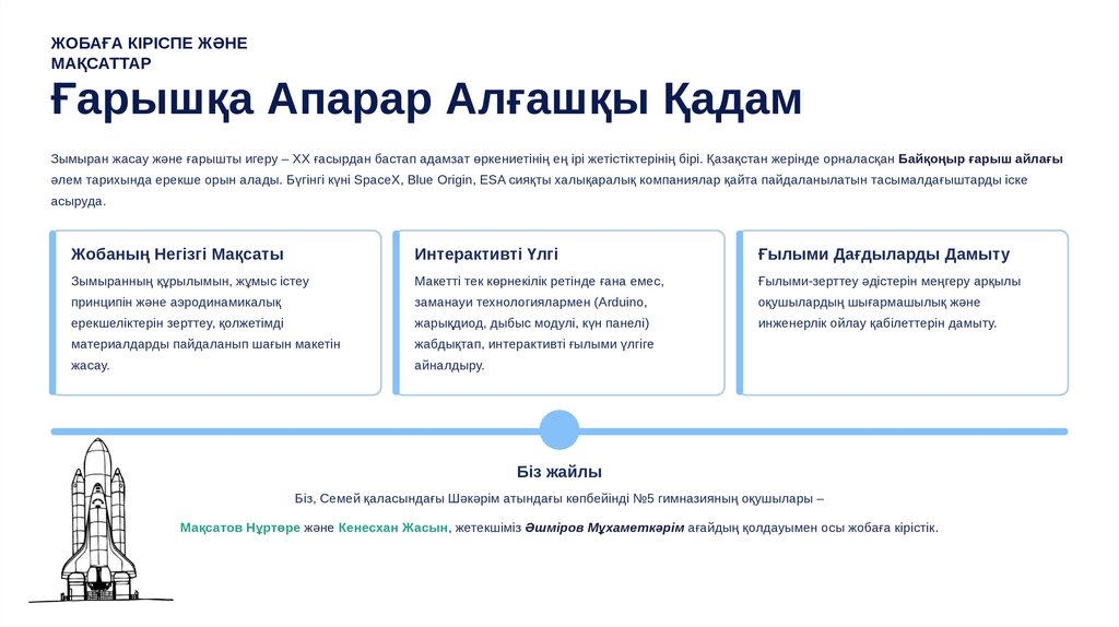 ҒАРЫШҚА ҰМТЫЛЫС: БОЛАШАҚҚА КӨПІРЗымыран модельдеу жобасы арқылы біз тек техникалық тәжірибе жинап қана қоймай, командалық жұмыс жасауды, ортақ