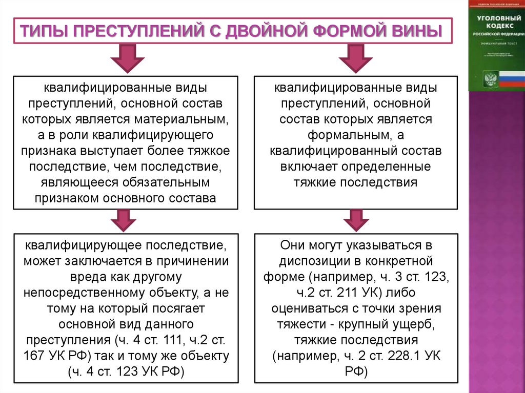 ТИПЫ ПРЕСТУПЛЕНИЙ С ДВОЙНОЙ ФОРМОЙ ВИНЫквалифицированные виды