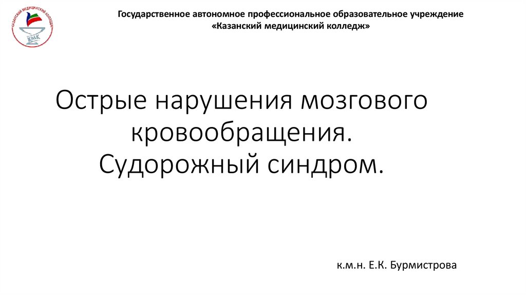 1. Острые нарушения мозгового кровообращения. Судорожный синдром.