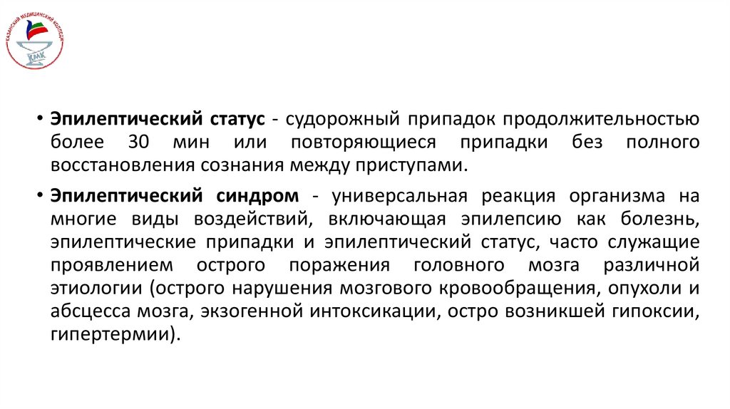 • Судорожный синдром. Причины судорожного синдрома у различных категорий пациентов