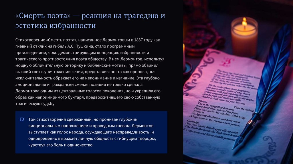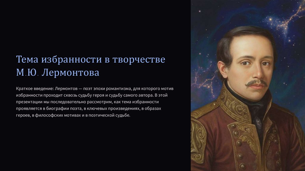 Краткое введение: Лермонтов — поэт эпохи романтизма, для которого мотив