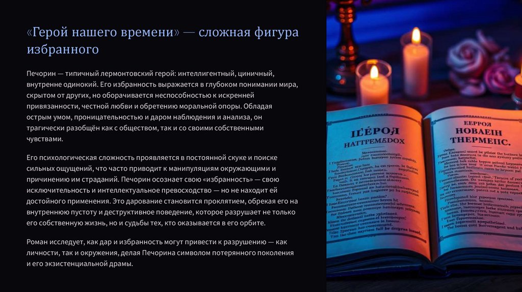 личности, так и окружения, делая Печорина символом потерянного поколения