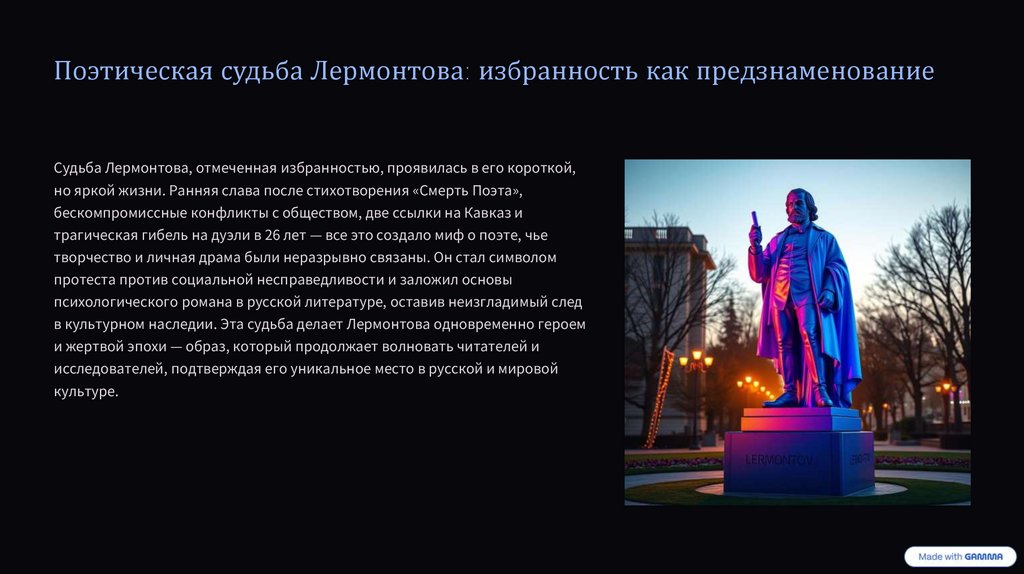 в культурном наследии. Эта судьба делает Лермонтова одновременно героем
