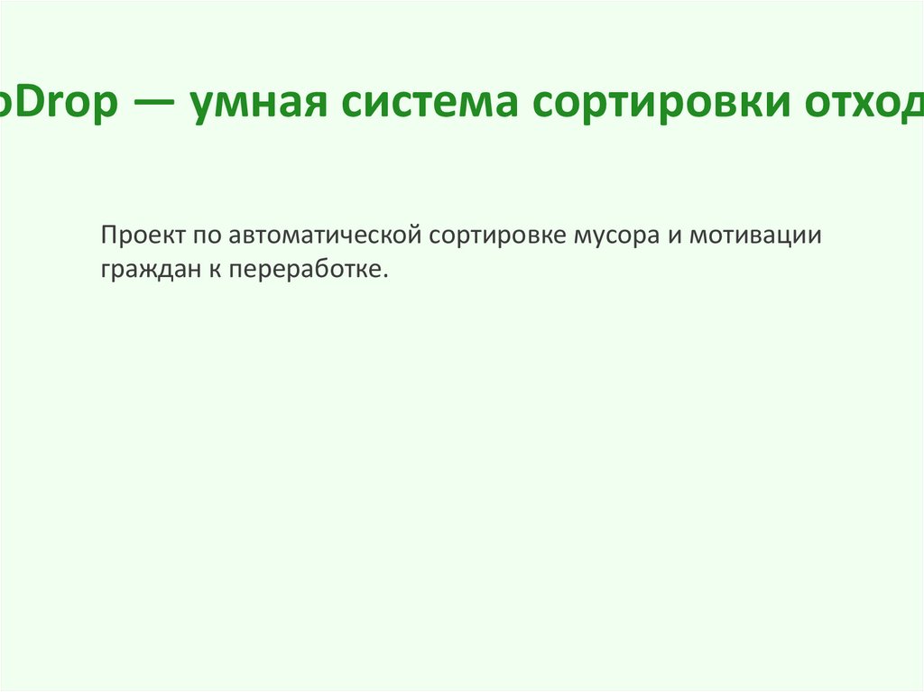 oDrop — умная система сортировки отходПроект по автоматической сортировке мусора и мотивации