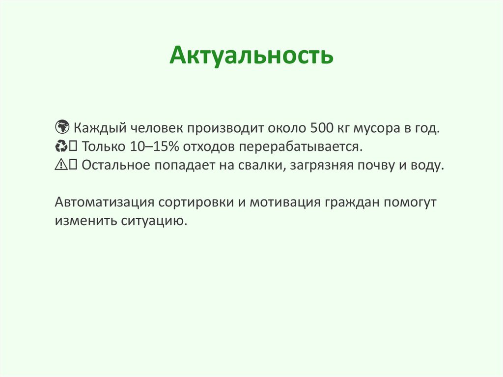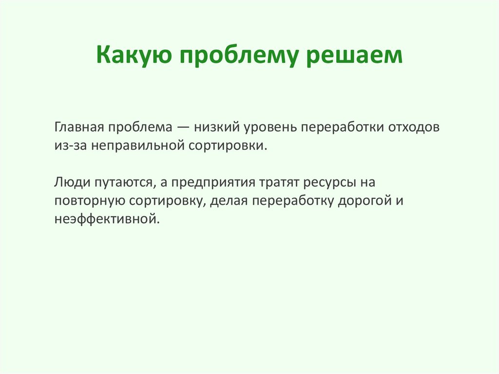 Какую проблему решаемГлавная проблема — низкий уровень переработки отходов