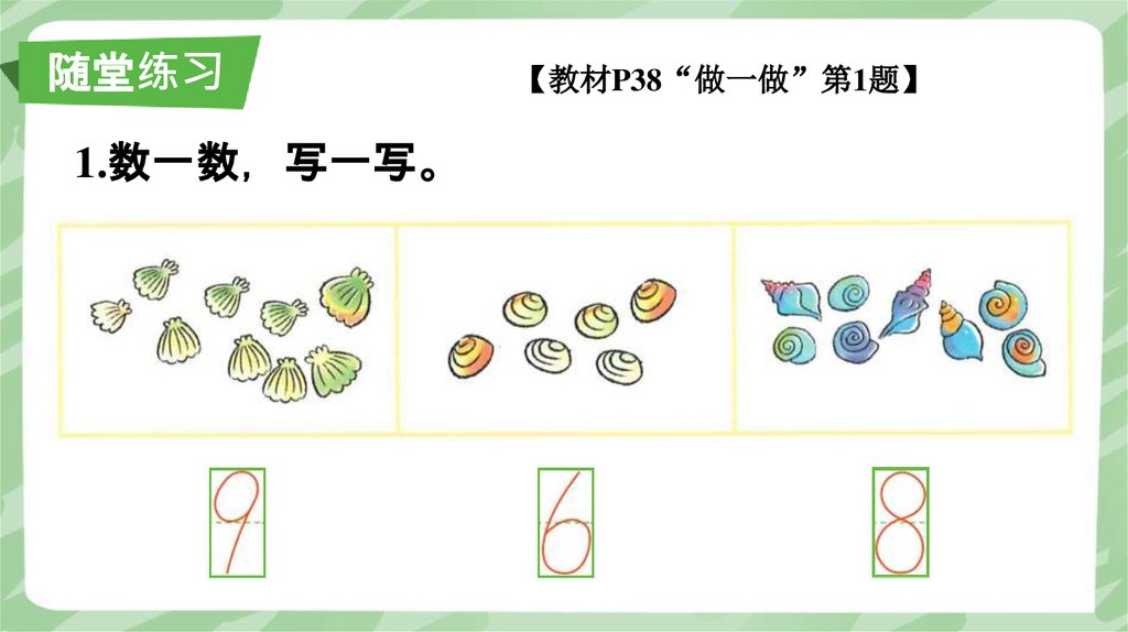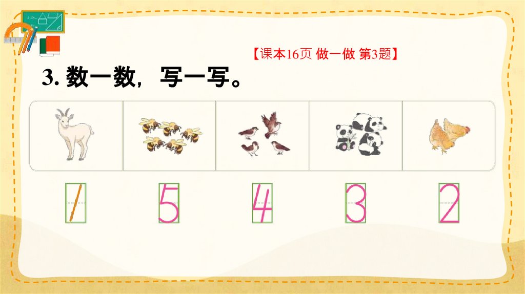 【课本16页 做一做 第3题】3. 数一数 写一写。
