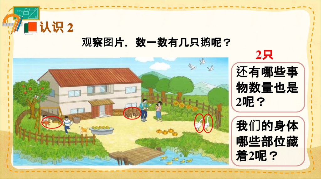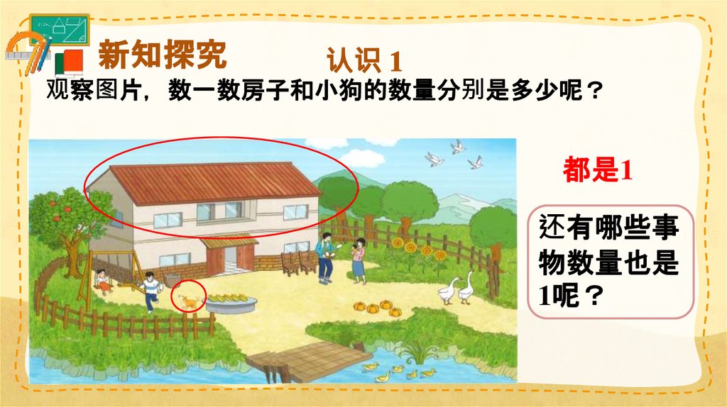 观察图片 数一数房子和小狗的数量分别是多少呢都是1