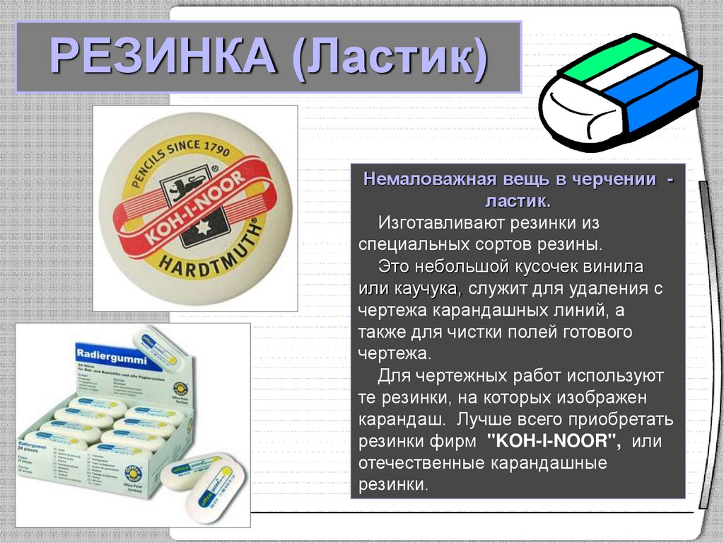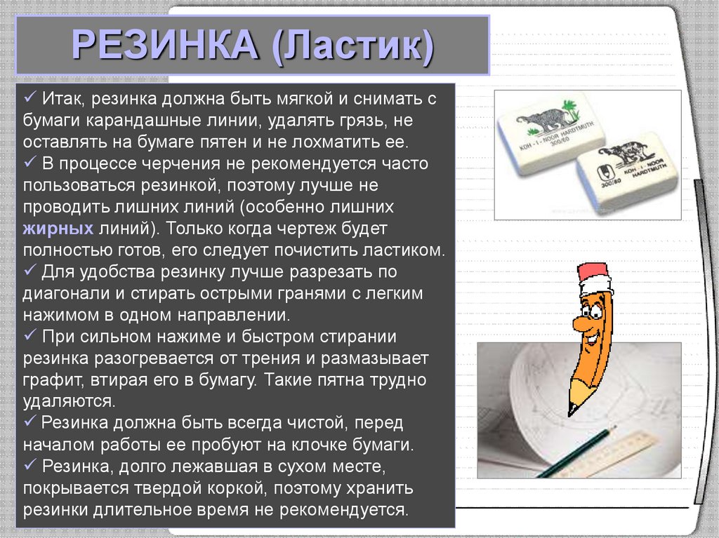 РЕЗИНКА (Ластик)Немаловажная вещь в черчении ластик.