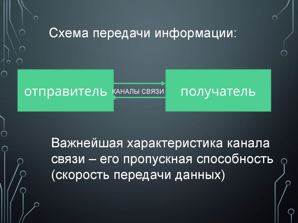 Схема передачи информации:отправитель КАНАЛЫ СВЯЗИ