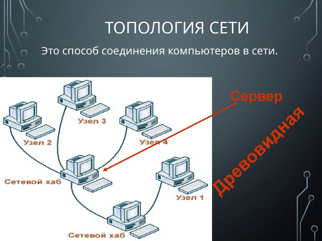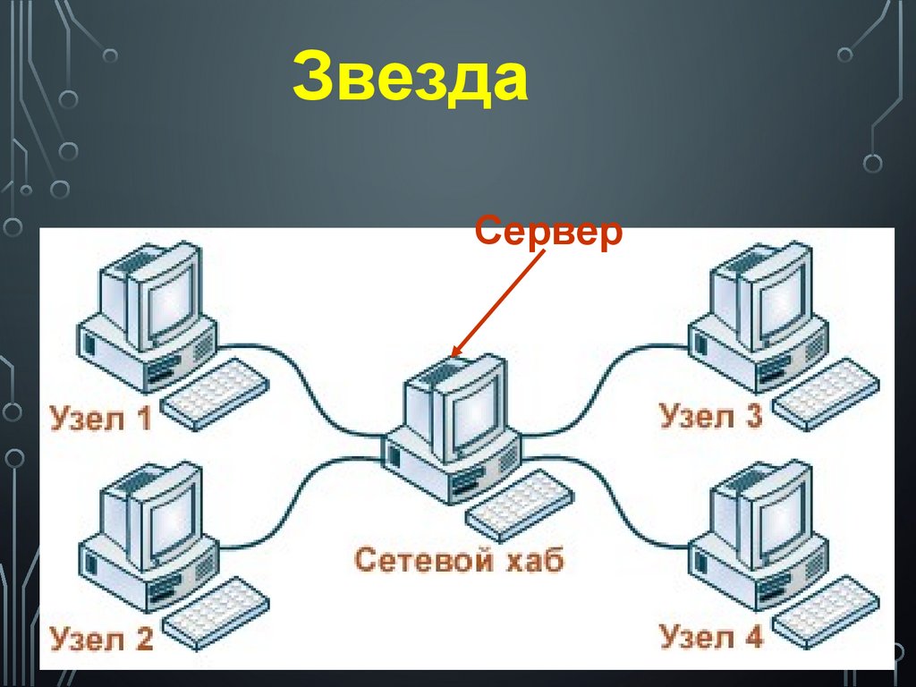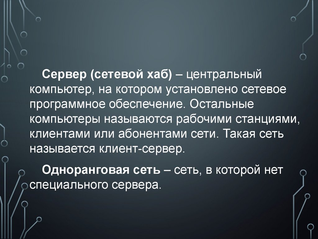 Сервер (сетевой хаб) – центральныйкомпьютер, на котором установлено сетевое