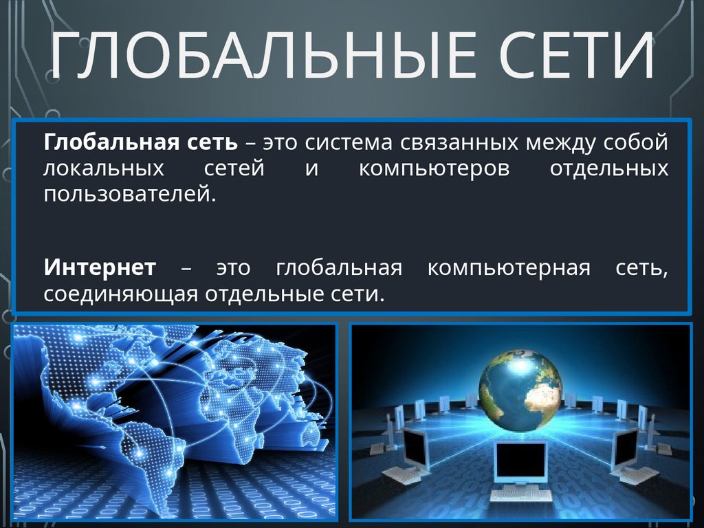 ГЛОБАЛЬНЫЕ СЕТИГлобальная сеть – это система связанных между собой