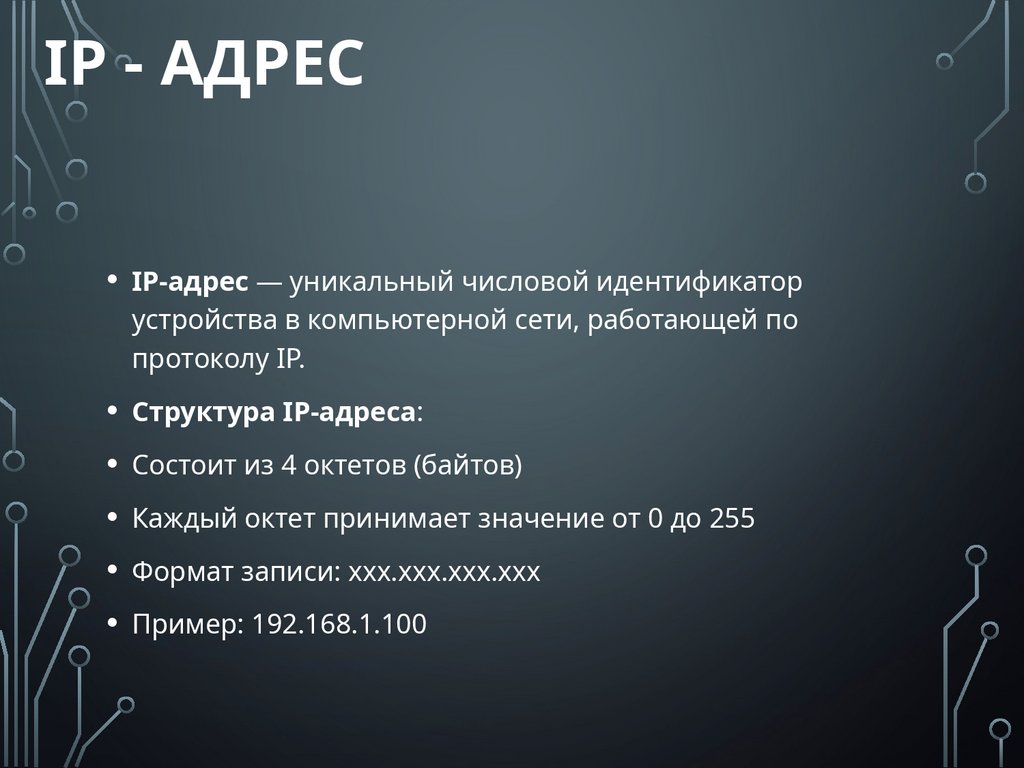IP - АДРЕС• IP-адрес — уникальный числовой идентификатор