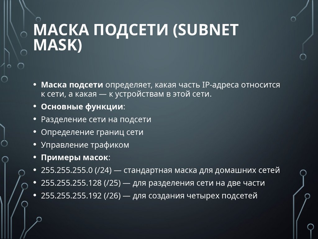 МАСКА ПОДСЕТИ (SUBNETMASK)