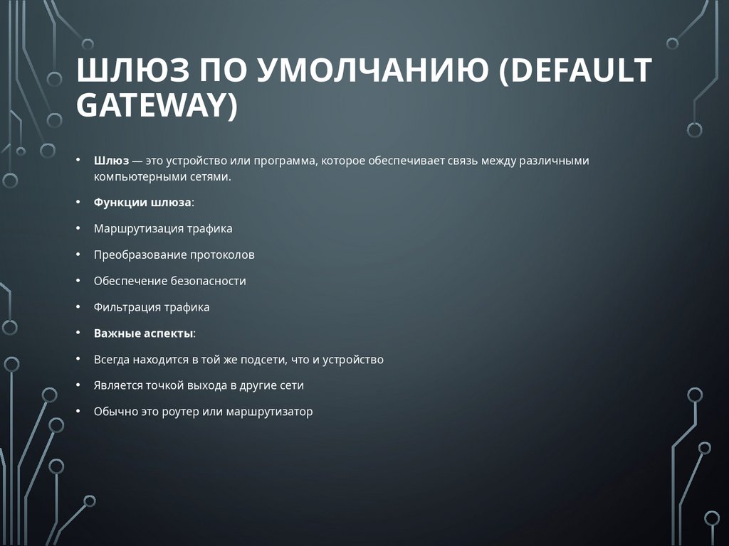 ШЛЮЗ ПО УМОЛЧАНИЮ (DEFAULTGATEWAY)