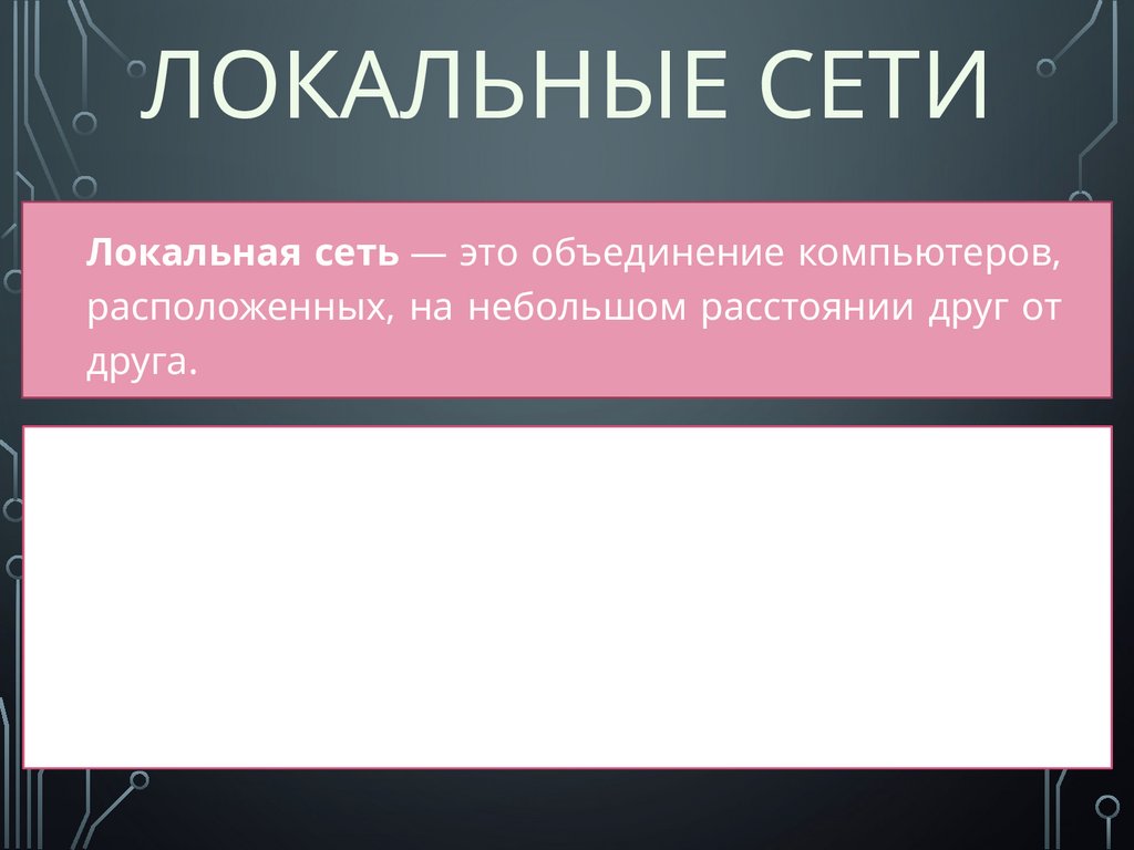 ЛОКАЛЬНЫЕ СЕТИЛокальная сеть — это объединение компьютеров,