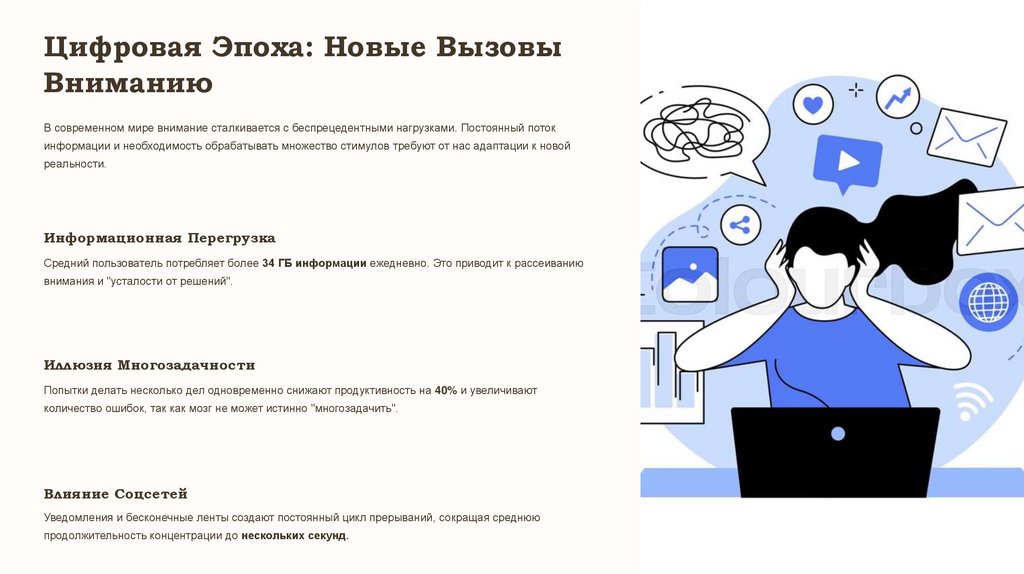 Средний пользователь потребляет более 34 ГБ информации ежедневно. Это приводит к рассеиванию