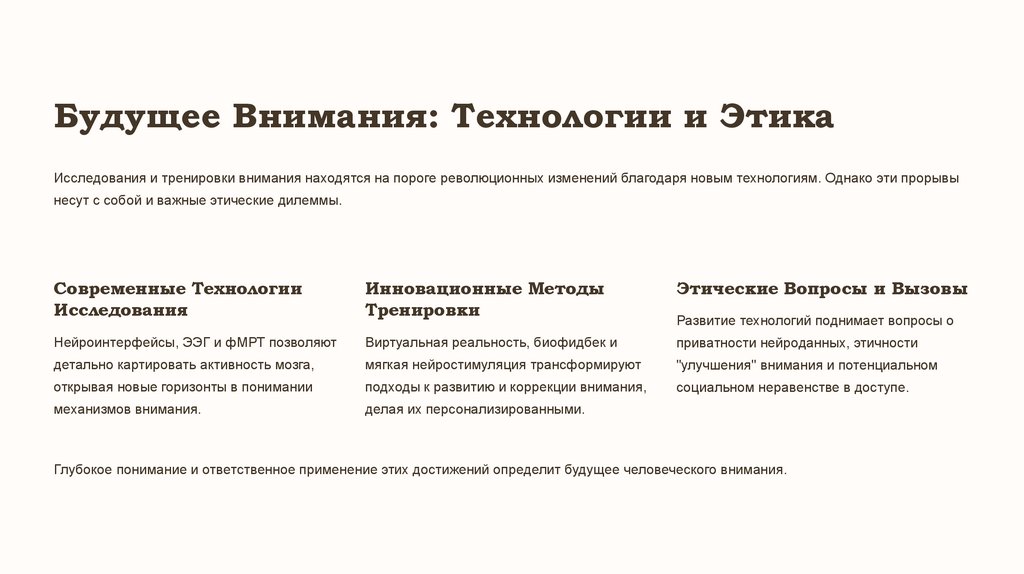 Глубокое понимание и ответственное применение этих достижений определит будущее человеческого внимания.