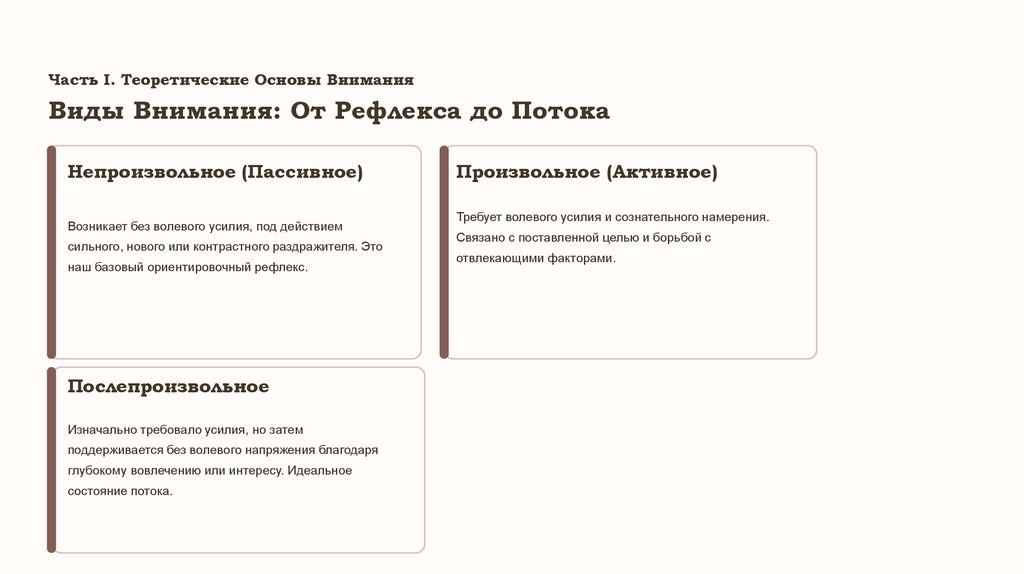 Часть I. Теоретические Основы ВниманияВиды Внимания: От Рефлекса до Потока