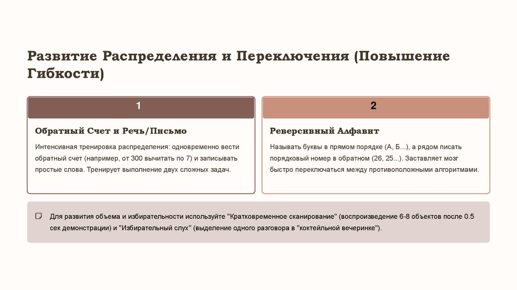 Эффективный тренинг должен быть комплексным, укрепляя нейросети лобных и теменных долей.