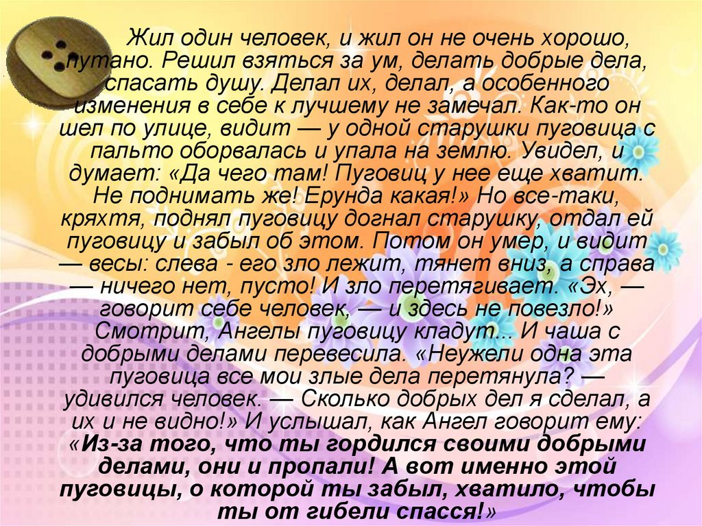 Жил один человек, и жил он не очень хорошо,путано. Решил взяться за ум, делать добрые дела,