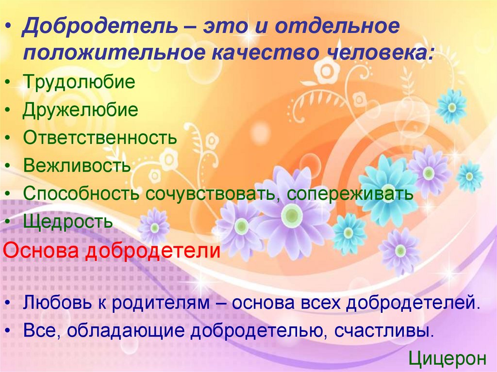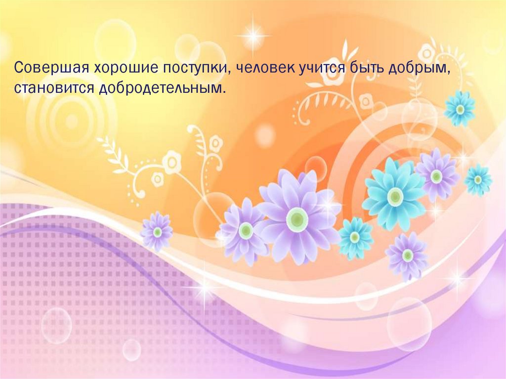 Совершая хорошие поступки, человек учится быть добрым,становится добродетельным.
