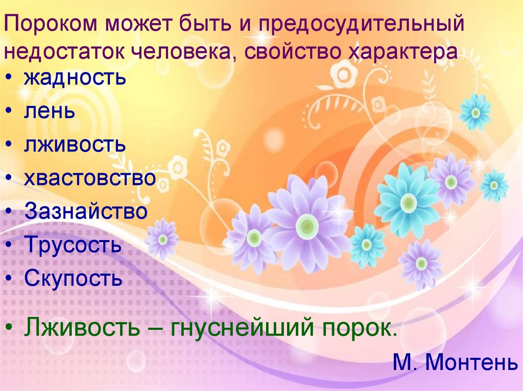 Пороком может быть и предосудительныйнедостаток человека, свойство характера
