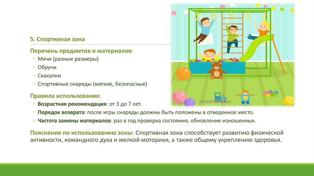 Пояснение по использованию зоны: Спортивная зона способствует развитию физической